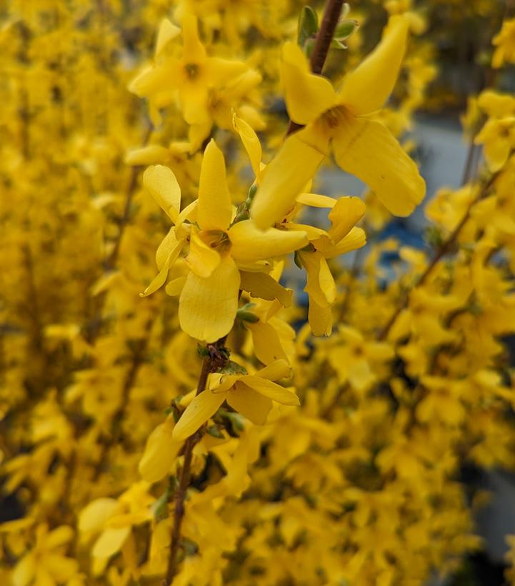 A much more intense yellow flower than most Forsythia. It is a fast growing plant with arching branches that nearly touch the ground. The flower buds are hardy to -10§C. An excellent, wide ranging border plant for hedges and breaks.