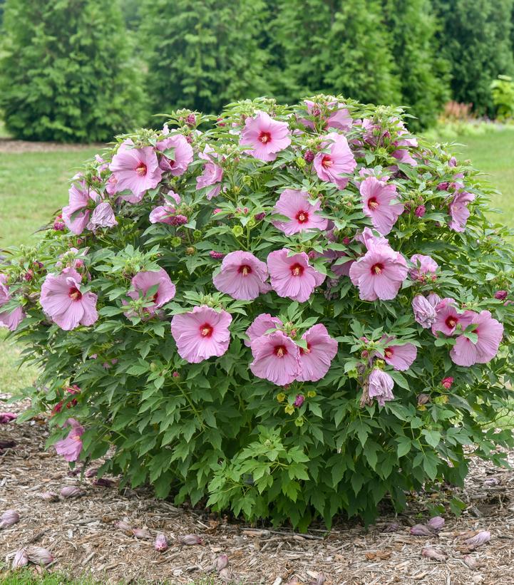 Description: Deer resistant Late to emerge but fast growing Maple-like rich green leaves Flowers 7-8″ wide Attracts pollinators Japanese beetles find these plants delicious