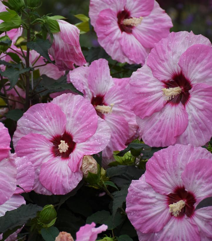 Description: Large white flowers with pink accents and a dark red eye Improved habit Immense amount of flowers Supports bees Attracts hummingbirds Deer resistant
