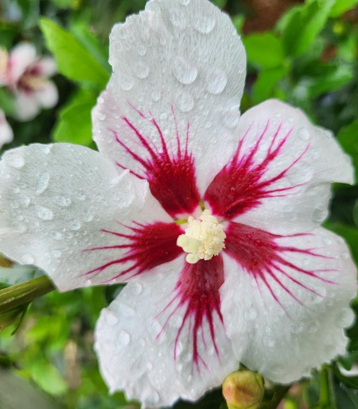 Another plant breakthrough from Proven Winners®/Color Choice®, ‘L’il Kim’® is the first dwarf variety of Rose of Sharon on the market opening up loads of landscape possibilities that weren’t available previously given the 8-10’ sizing of all others in this species. ‘L’il Kim’® is less than half the size meaning it will fit in small spaces or along the foundation without overpowering the area. Just because it’s small, don’t think that ‘L’il Kim’® is a wimp when it comes to blooming! Starting in mid July, big, beefy buds begin to open to reveal 2″ diameter, star shaped, pure white flowers with a stunning deep red center. The bloom is heavy, lasts into early September and the individual flowers last up to 3 days, 3 times longer than those on any other Hibiscus!! Even its foliage is better than its larger brethren showing better thickness and much deeper color than others. You’ll want to plant more than one ‘L’il Kim’® and why not with its easy care nature and its ability to thrive in full or half day sun.