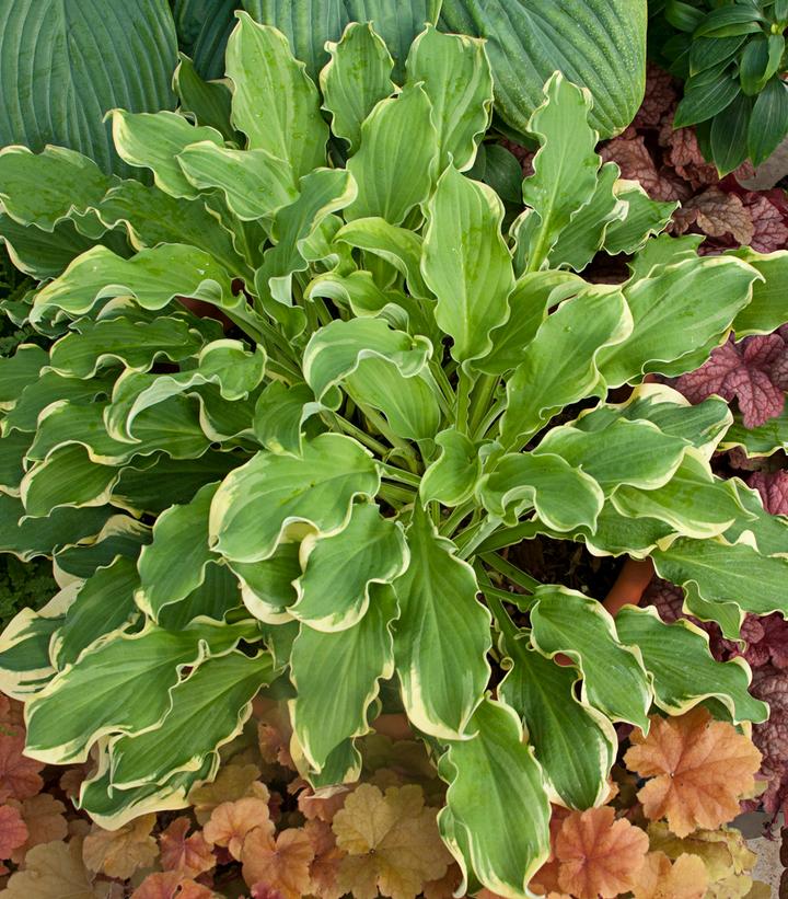 Description: Delightfully fun, extremely ruffled hosta Distinctive specimen in shade gardens and containers Slug resistant Light lavender flowers appear midseason Foliage Interest