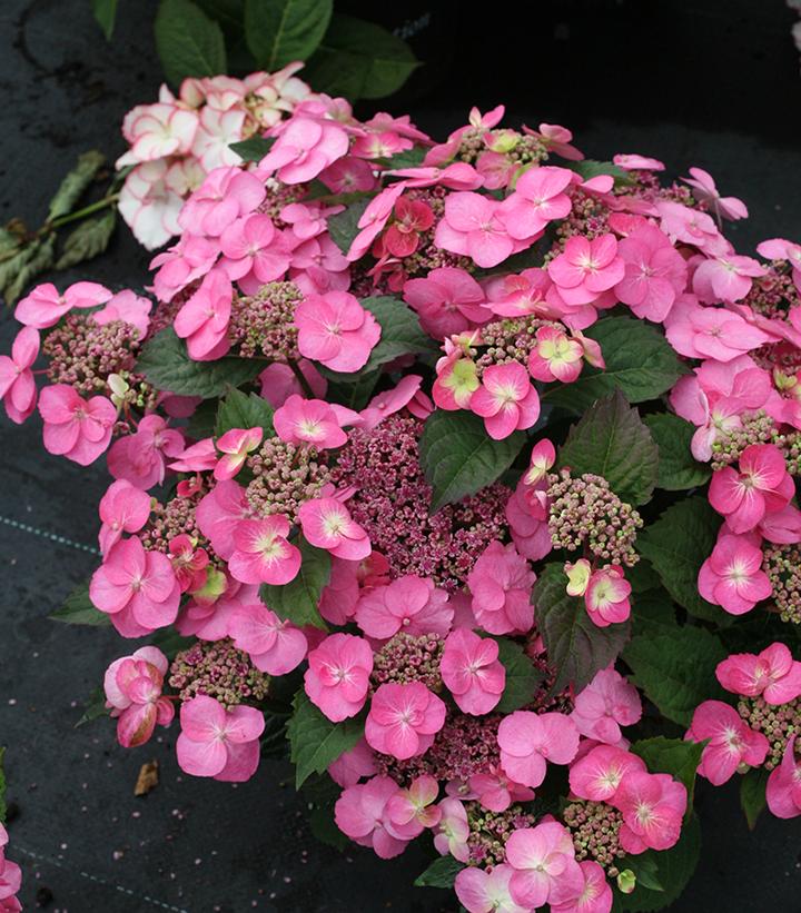 Description: Very hardyLacy pink or blue flowersFlower color may be affected by soil pHContinuous bloomRebloomer