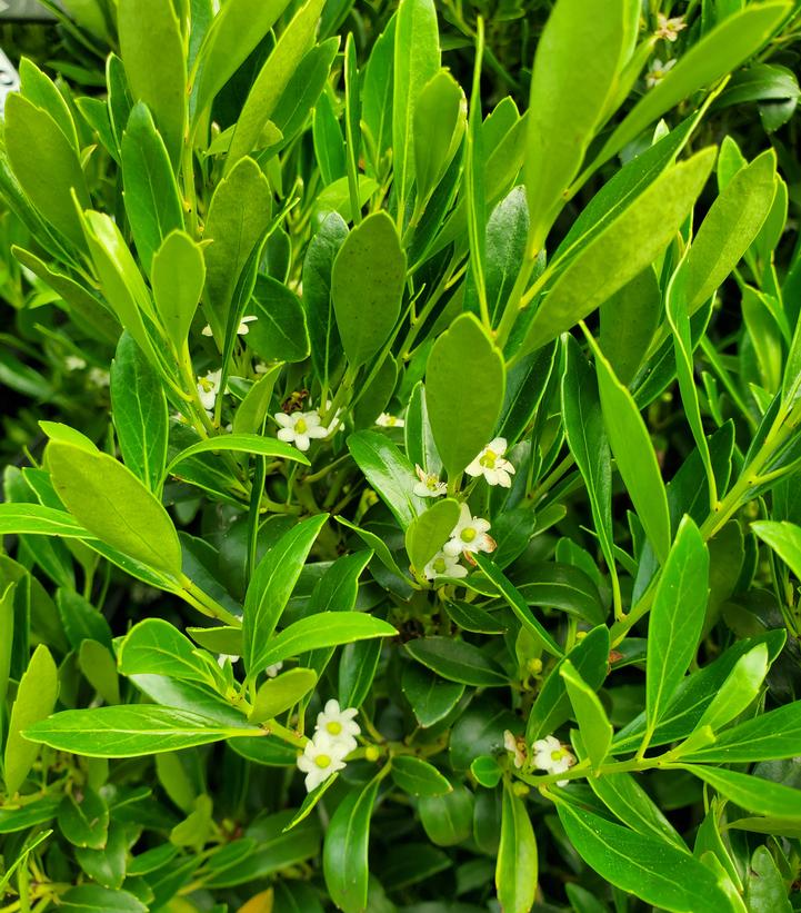 Inkberry is used extensively in the landscape and ‘Shamrock’ is one of the most prized varieties of this workhorse species. It’s easy to figure out why once you see its dense, slow growing form and its extremely attractive foliage that is pointed, lustrous and exceptionally cold tolerant. ‘Shamrock’ retains its great form with a minimum of maintenance, reaches only 4′ tall at maturity and is virtually pest free. The species is native to the eastern U.S., so you know this landscaper’s dream is useful as an attractive specimen, in hedges, or planted in groups.