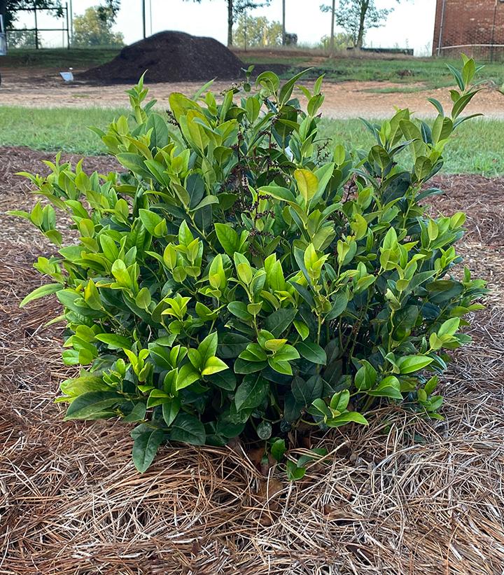 Description: Well-rounded, low-maintenance shrub Performs well in both sun and shade Requires very little pruning Peach-orange tinted new growth Small white flowers in spring