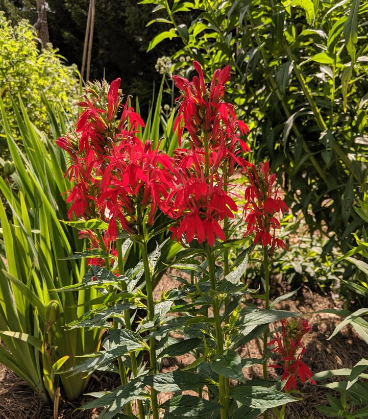 You’ll find this classic American Beauties plant growing naturally in moist, swampy areas, but with a constantly moist soil it will thrive in your landscape and put on a stunning summer show. Plant it toward the back of the garden or around wetland features and in groups to put on the best show as this plant forms a dense clump of upright stems crowded with almost fleshy, medium green foliage. Buds form at the tops of these stems and give rise to a profuse amount of scarlet-red, two lipped tubular flowers in late July continuing right into September. Humming_birds find these flowers an irresistible source of nectar as do colorful butterflies like swallowtails, while spent flower heads and stems provide nesting to birds and cover for small native animals and insects.