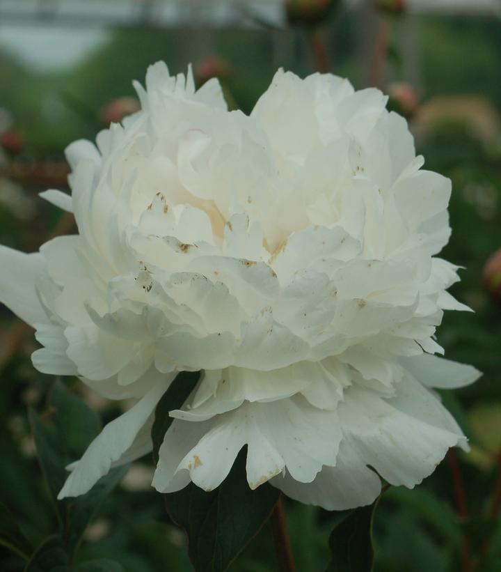 Description: Dependable and very showy variety Clean dark green foliage Large white double flowers open in late May Fragrant blooms make a great cut flower